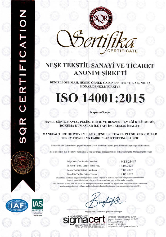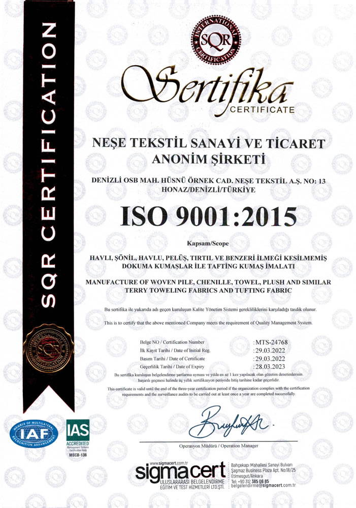 Registriert als Neşe Tekstil A.Ş.