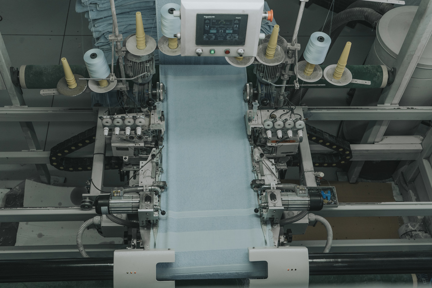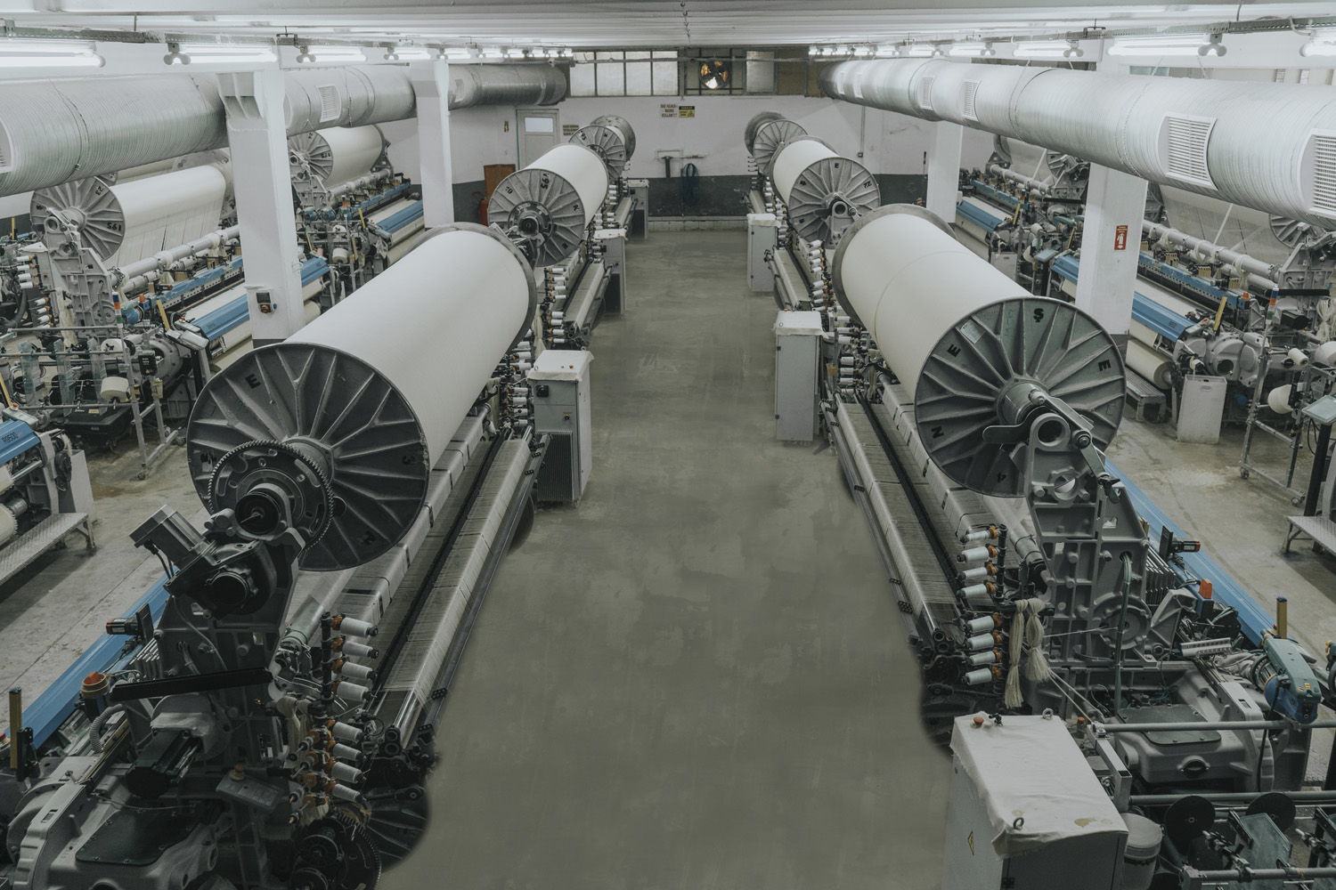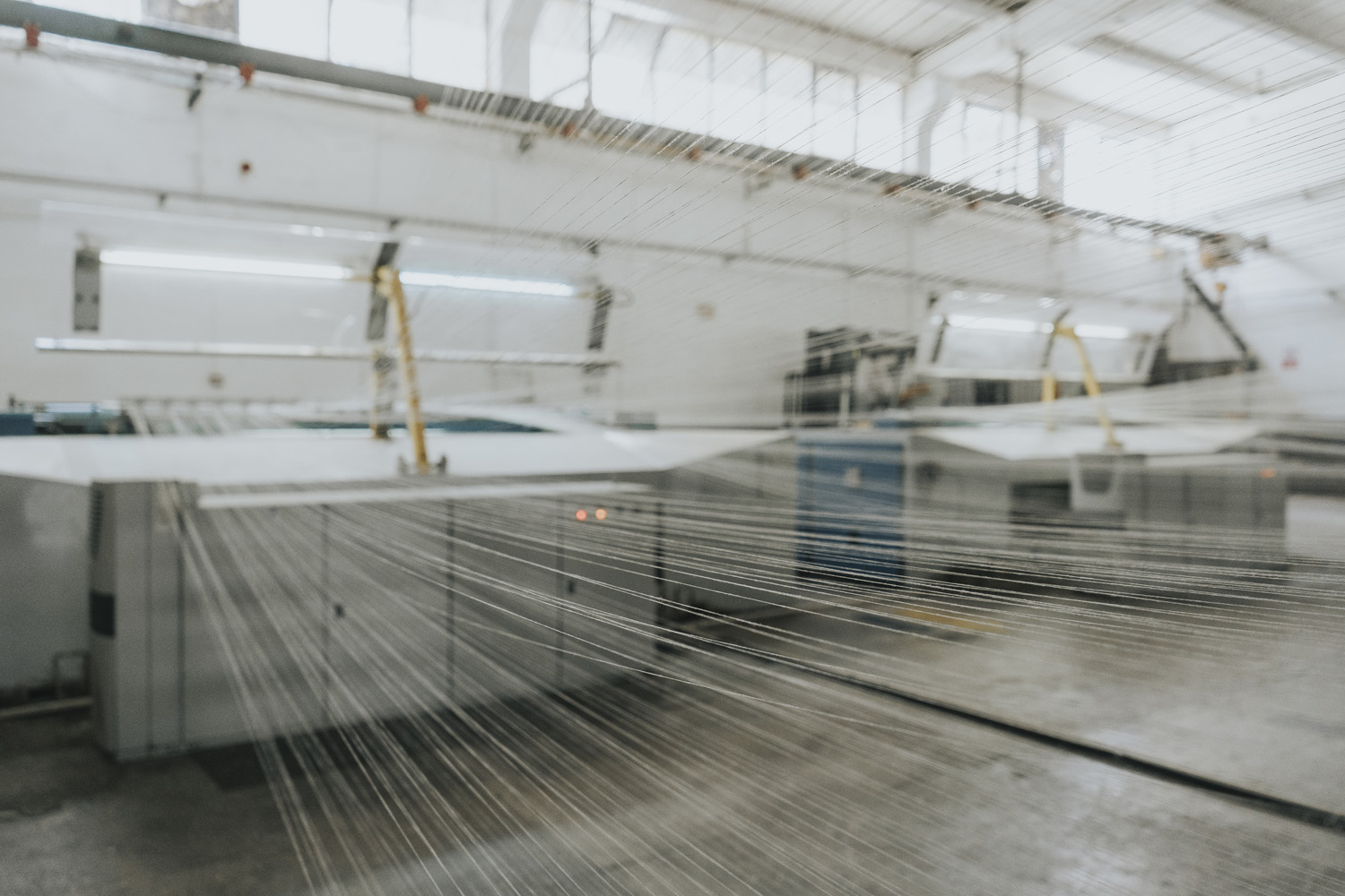 The first step of production begins with the arrival of yarn bobbins to the sizing unit for weaving preparation.